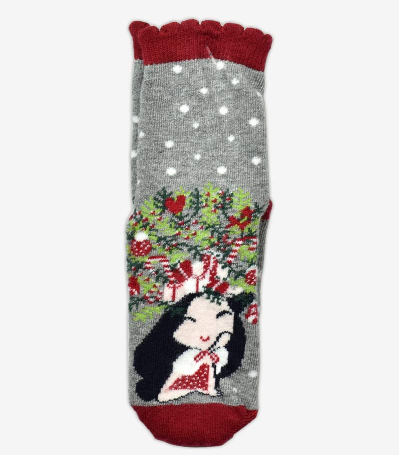 #Катамино Чорапи Коледа за момиче в сиво/червено.
