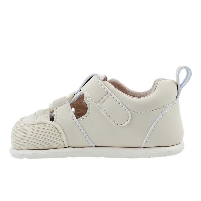 Изработени са с меко и гъвкаво ходило, което можете да сгънете в ръката си. Отпред са по-широки, за да може бебешките пръстчета да се движат на свобода. Ходилото е с нулева денивелация и широката предна част правят спортните боси сандали предпочитани за комфорта на вашето мъниче. Сандалите са проектирани така, че да следват естествените движения на бебешкото краче. Произведени са от микрофибър, който е издръжлив на износване и се почиства с влажна кърпа. Отпред сандалите имат гумен протектор, който да предпазва бебешките пръстчета от нараняване. Стелката е омекотена и лека, тя е подвижна и благодарение на нея, ще може да следите за правилния размер на вашето дете. Закопчаването с велкро каишка ги прави лесни за обуване. Кръстосаният ластик върху горната част на сандалите ще подпомага по-плътното обхващане на крачето.