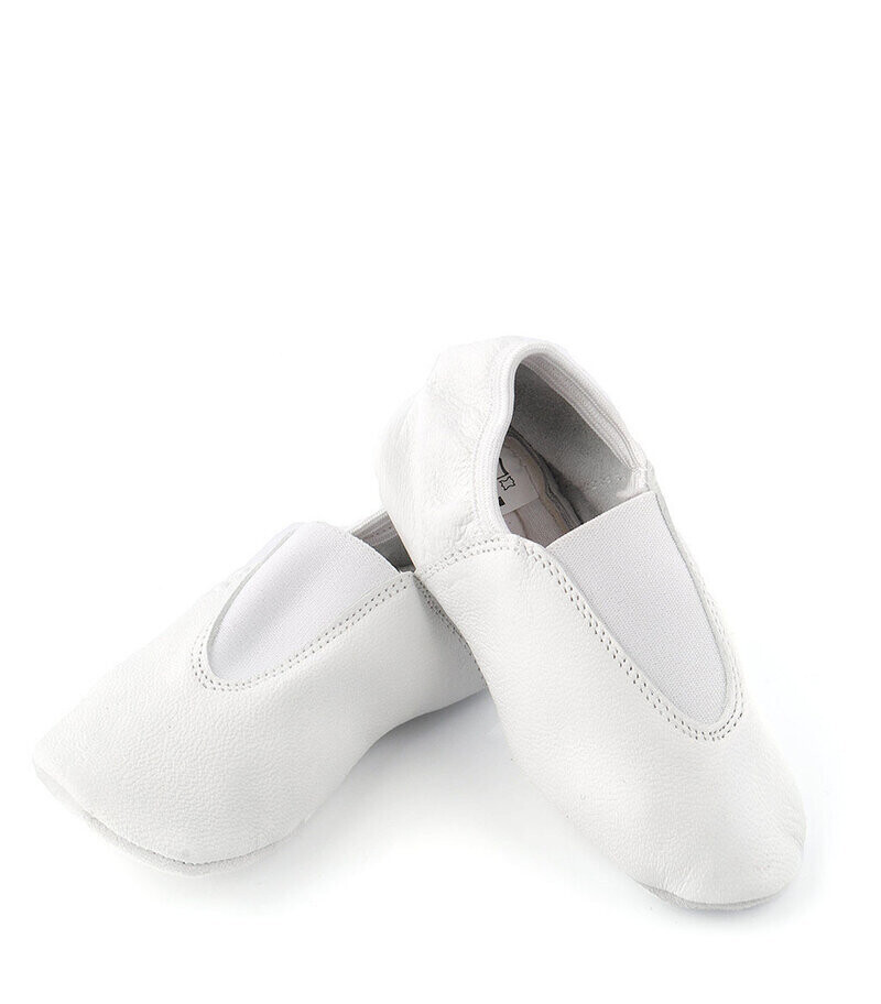 Цвички от естествена кожа с ластик за по-лесно обуване. Подходящи за танци и спорт в зала.