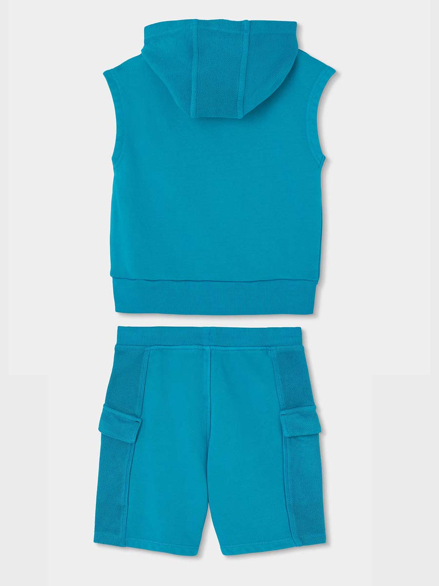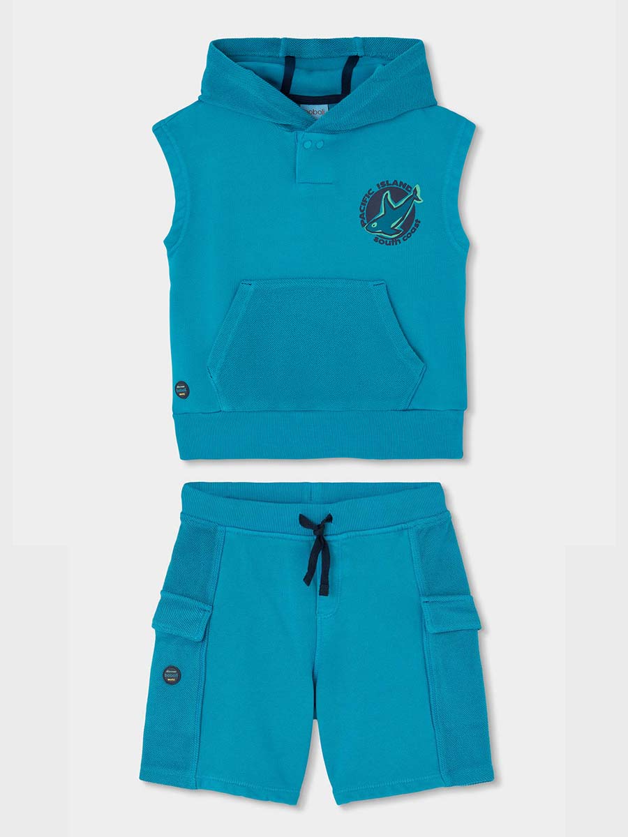 # Комплект суичър с качулка и къси панталони с карго джобове за момче.