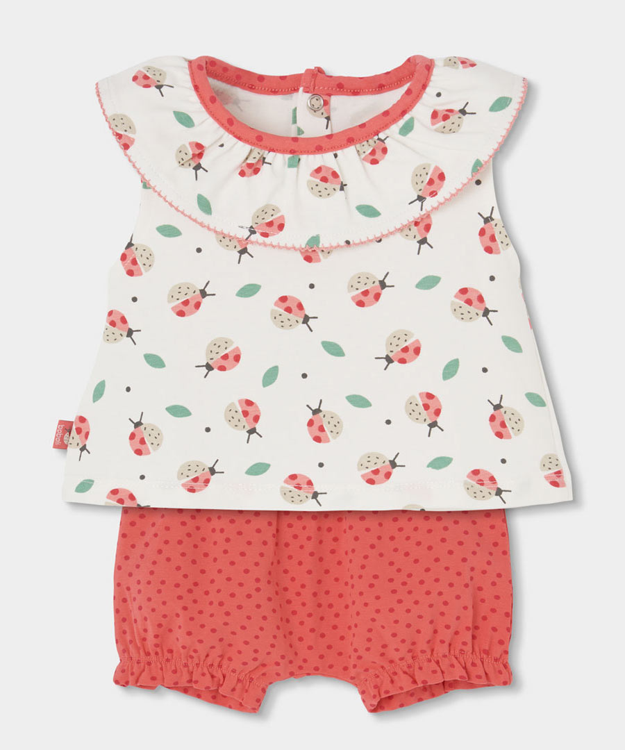 # Комплект за бебе момиче. Тениска с къс ръкав и шорти.