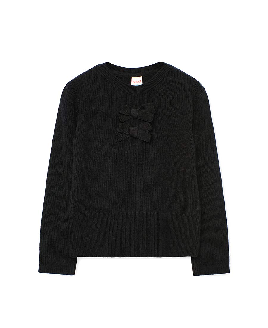 # Пуловер рипс в черно за момиче.