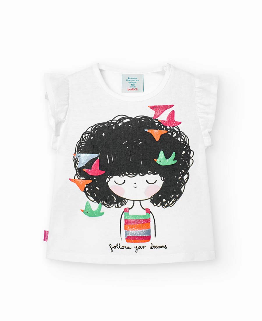 # Boboli Тениска за момиче. Къдрички на ръкавите.