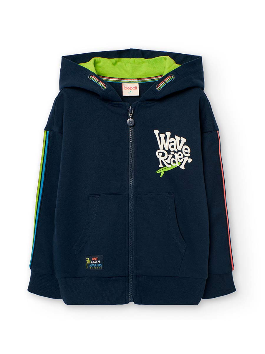 # Boboli Суичър за момче в тъмносиньо. Кант и подплата на качулката, които освежават.