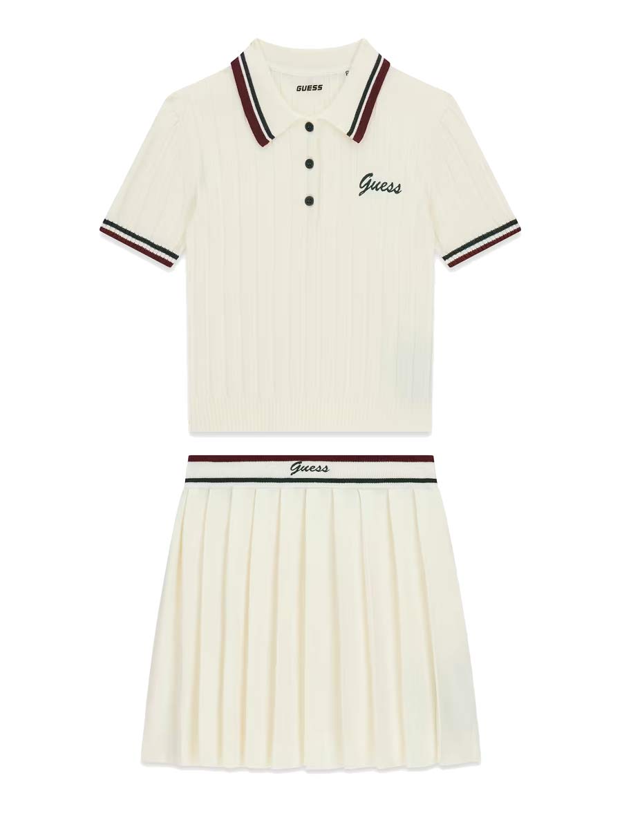# Guess Комплект фино плетиво, рипсена тениска и плисирана пола за момиче.