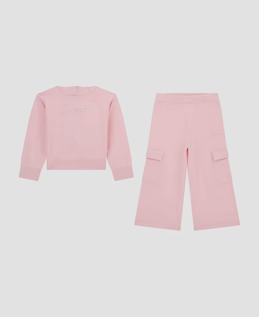 # Guess суичър и широк, модерен панталон със карго джобове за момиче.