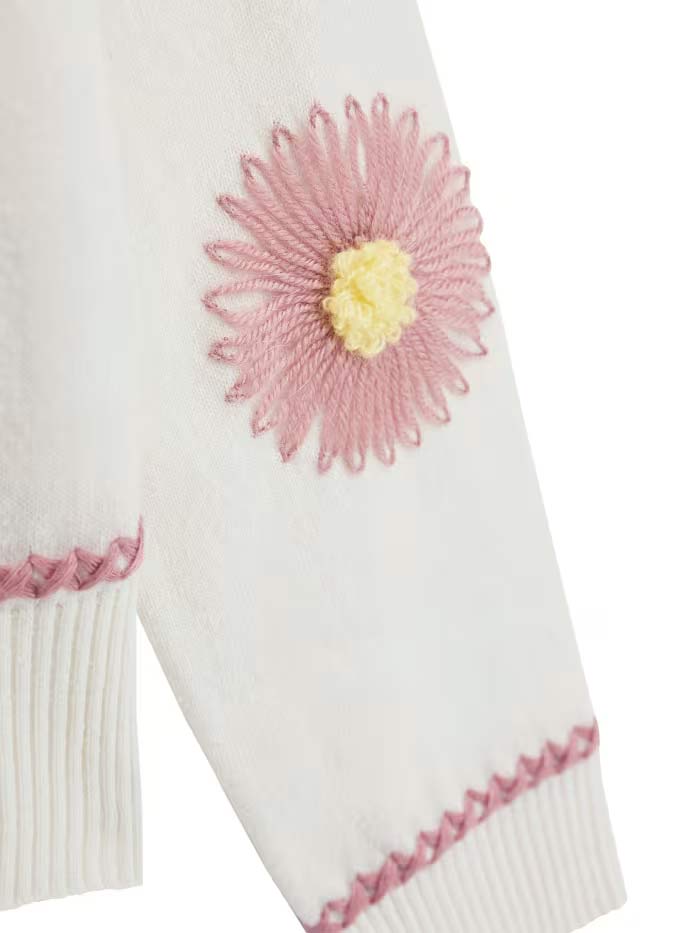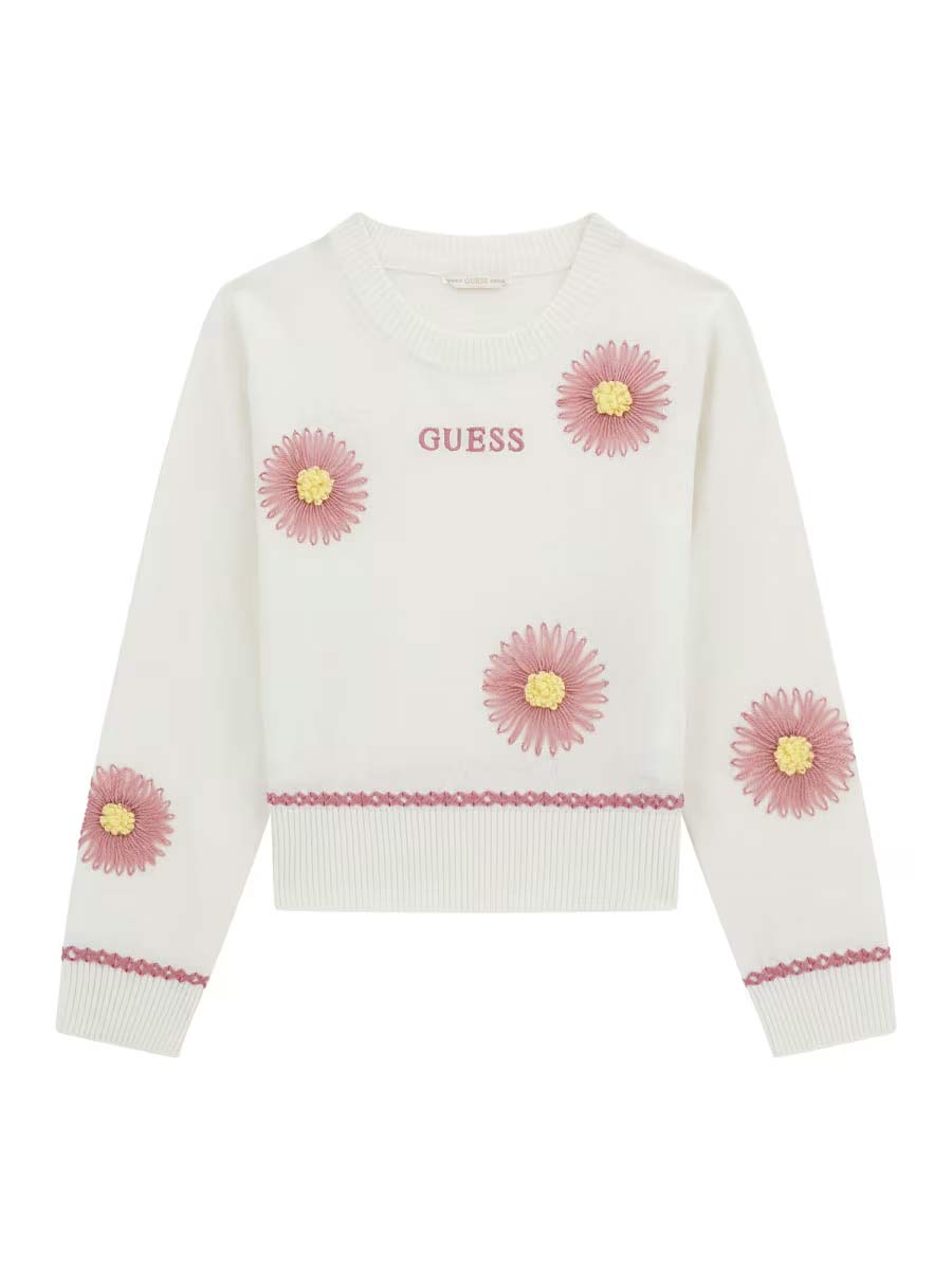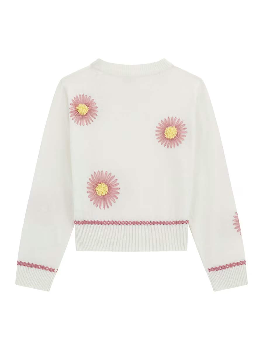 # Guess тънък, плетен пуловер с бродирани цветя за момиче.
