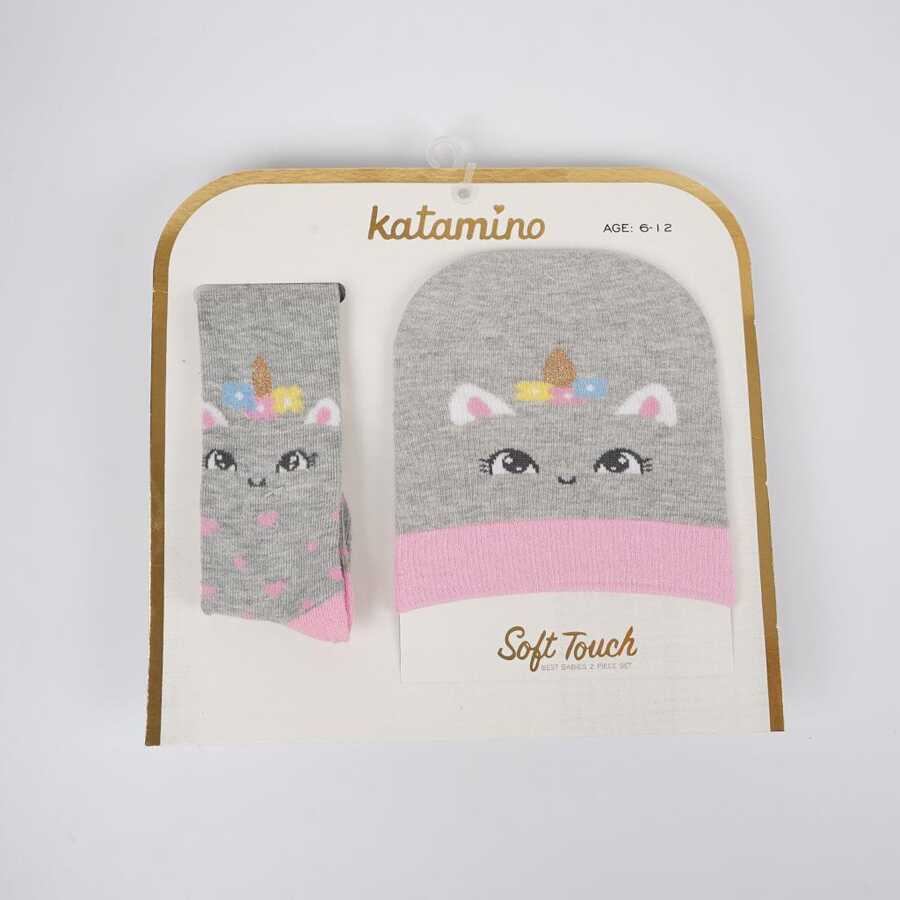 Katamino Комплект шапка+чорапогащник за момиче. Състав: 80%памук 18% полиамид 2%еластан. Произведено в Турция.