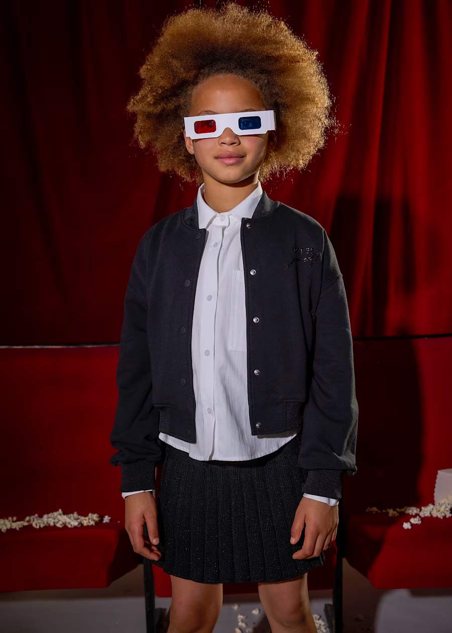 # Mayoral Суичър със свободна кройка за момиче. Яке тип бомбър. Закопчаване с тик-так копчета на предната част.