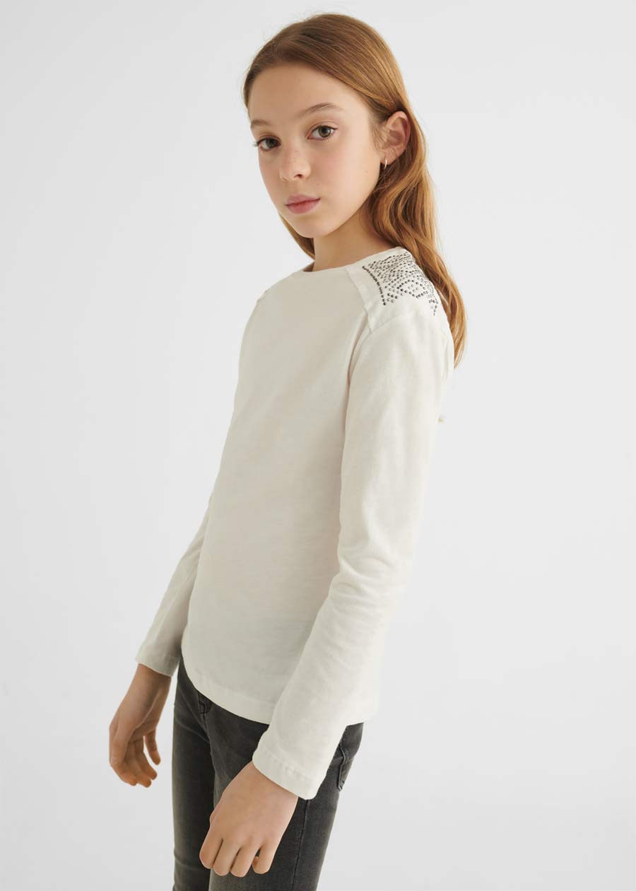 # Блуза за момиче с дълъг ръкав, тънко трико.