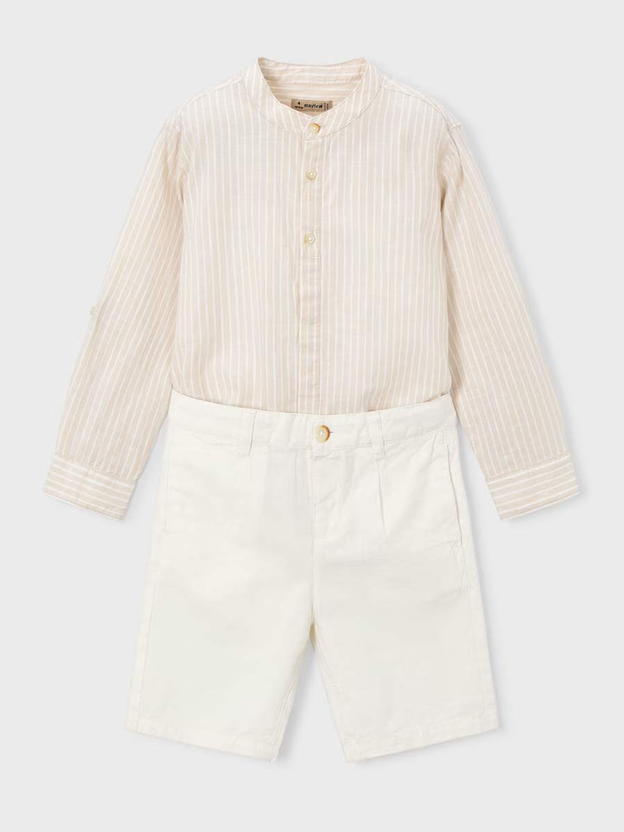 # Mayoral Комплект с бермуди и риза от лен с дълъг ръкав за момче.
