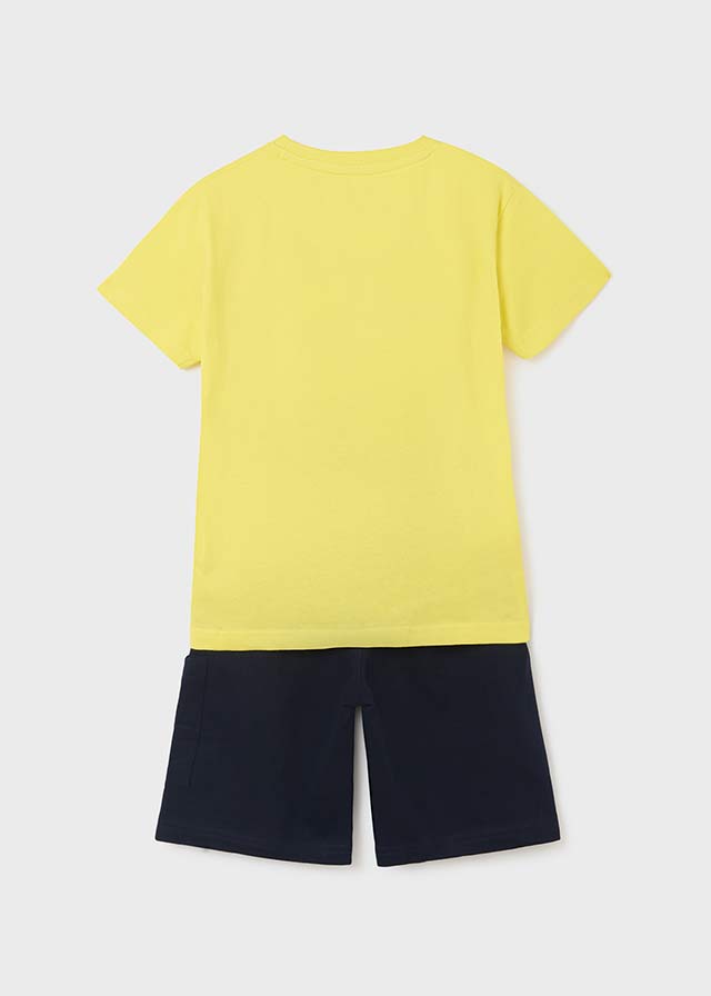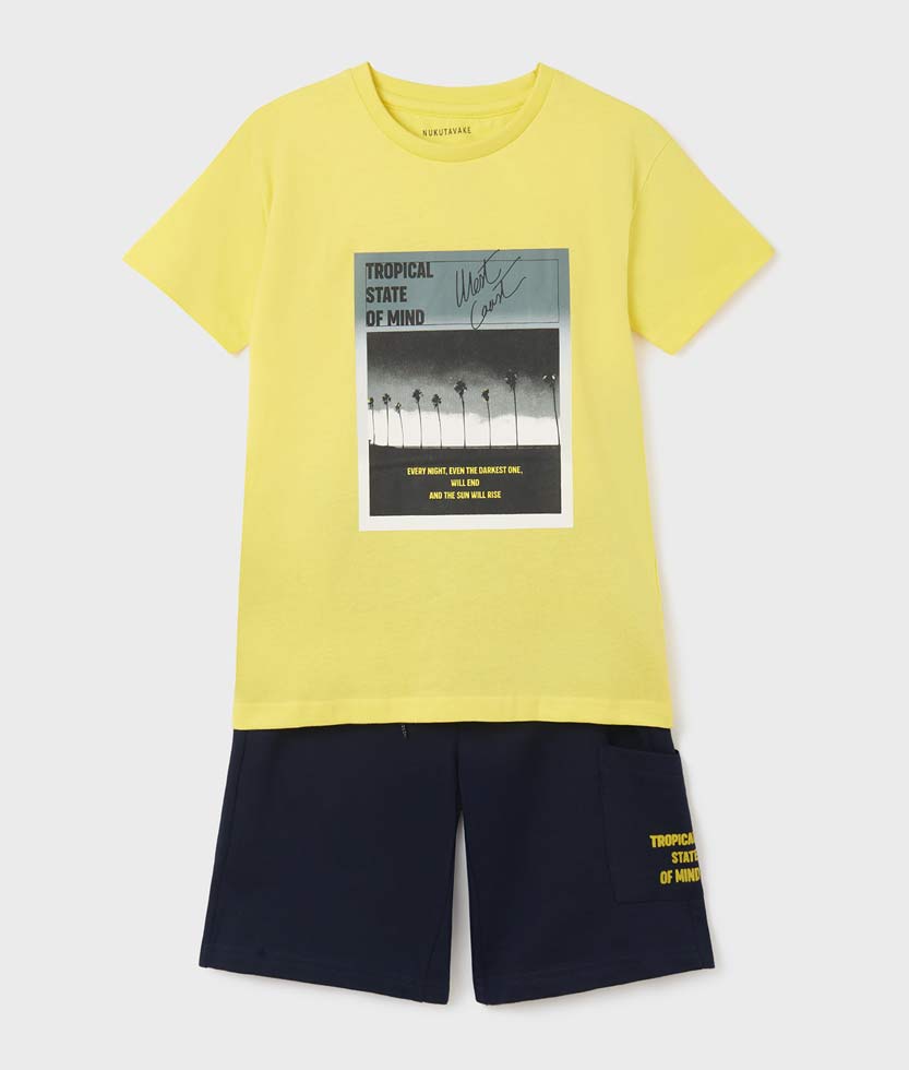 # Трикотажен комплект с къси панталони и графика за момче.