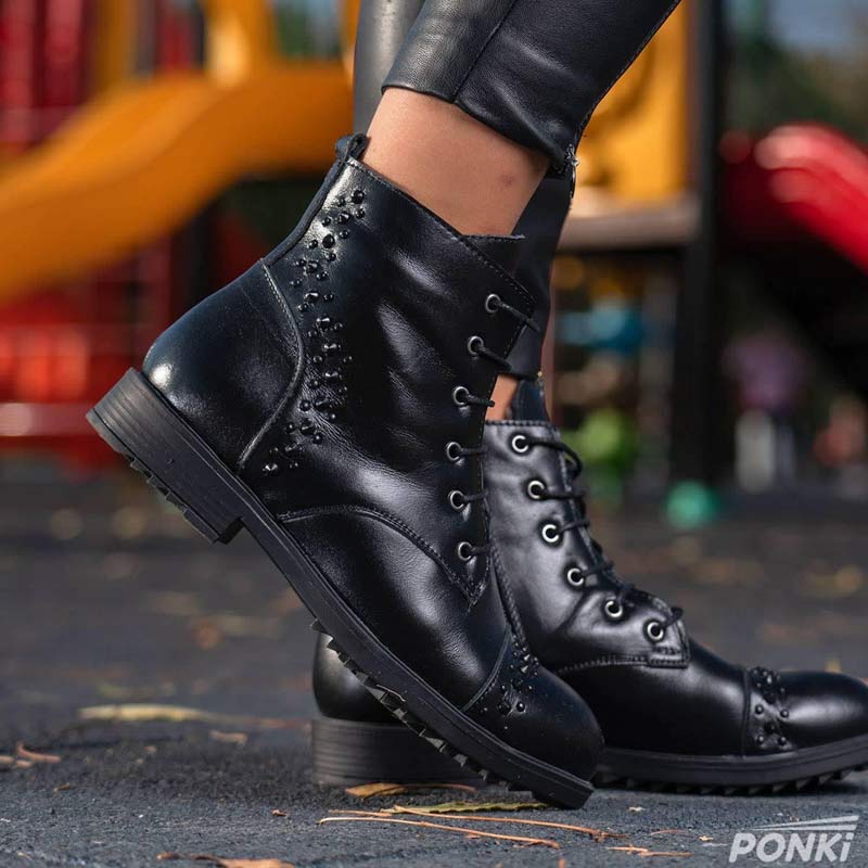 # Ponki Боти с апликация в черно за момиче.