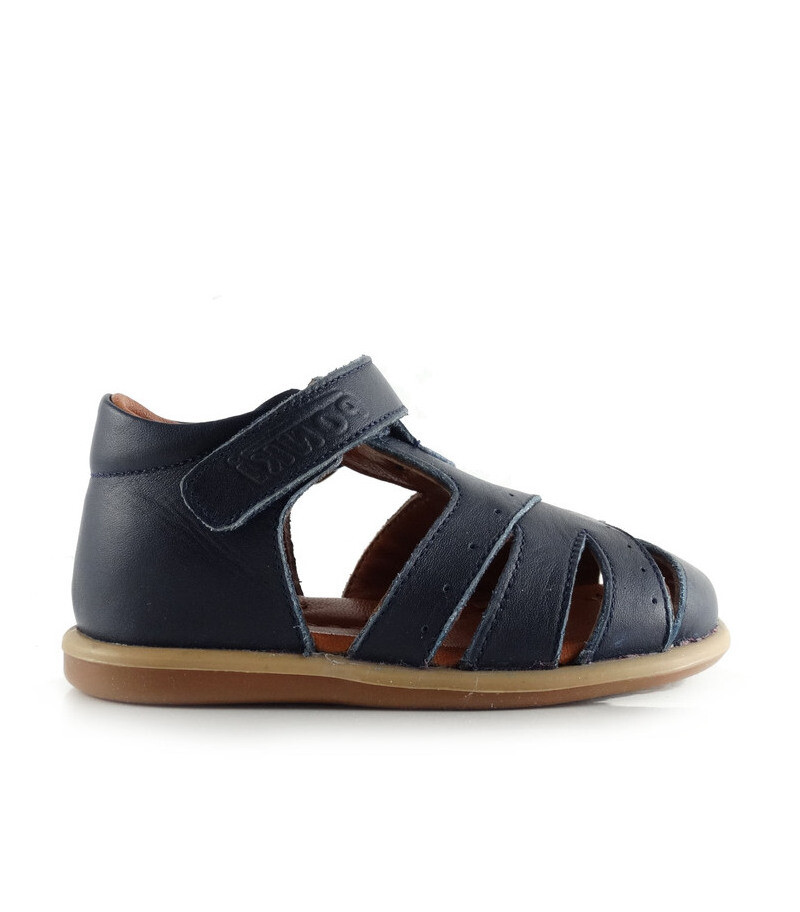 Детски сандали – естествена кожа, анатомична стелка. Моделът е с велкро-лепка. Цвят тъмносин.