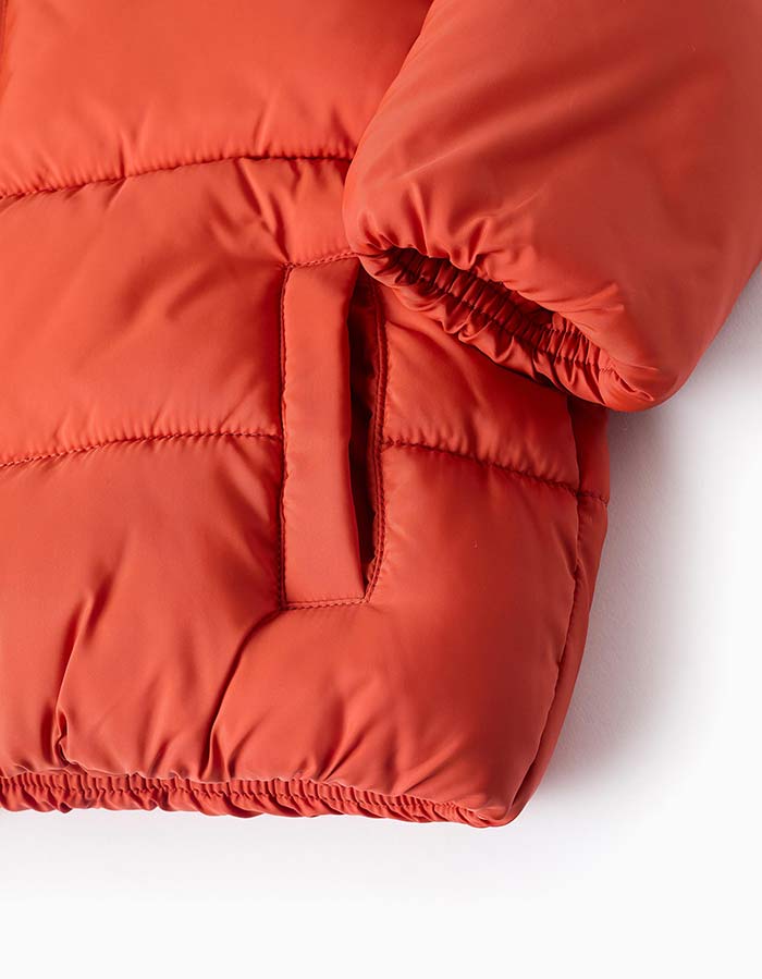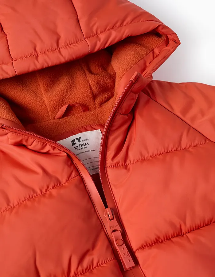 # Ватирано яке с качулка за бебета момче, с подплата от полар за допълнителен топлинен комфорт.